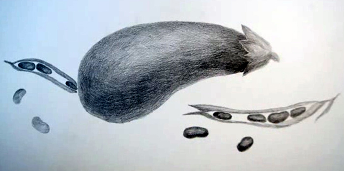 • сангина — мелок с тёплым красно терракотовым оттенком; отлично передаёт естественные тона кожи, легко растушёвывается, позволяет создавать широкие тональные пятна и тонкие линии;